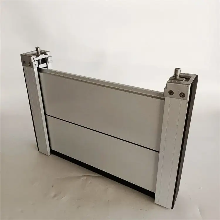 4、规格:防汛挡水板每片截面尺寸高度为200mm,厚度为40 mm,壁厚2 mm、1.5mm;边立柱截面尺寸为90*60 mm;中立柱截面尺寸为90*100 mm;三角支架支撑件截面尺寸为50*50 mm;防水高度依据防汛挡水板每片高度结合用户所在地历史潮位或用户要求来设定;防汛挡水板宽度依据安装位置实际门洞宽度设定;一般门洞宽度在3500mm以上时中间须均衡设置中立柱及三角支架。