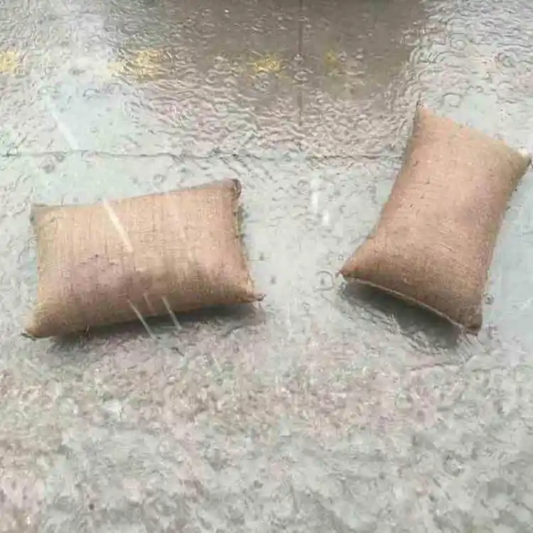 又被称为吸水麻袋,是存储便捷,用时简易。吸水棒的麻纱或纯棉布原材料,按用途制成不同规格型号的表层袋,包装袋是吸湿材料组成。麻袋型吸水膨胀袋吸湿原材料为分子化学物,吸湿后20kg,是吸水前的50-60倍。麻袋型膨胀袋接触水质前为420克,将吸湿袋渗入水里2-5分钟后能吸水质量至20千克左右。麻袋型吸水膨胀袋澎涨后吸湿袋可成重约150Kg的物体重量