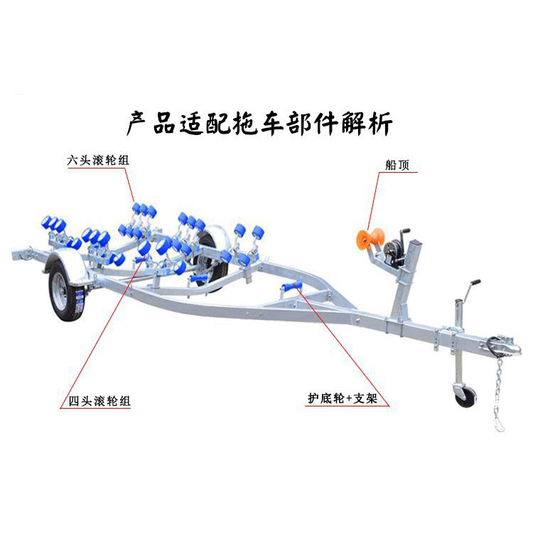可调节滚轮组:与游艇底部自动贴合,不伤船底。 热镀锌处理:所有部件固定螺栓均采用热镀锌防锈处理,螺帽采用不锈钢注塑防松螺帽。