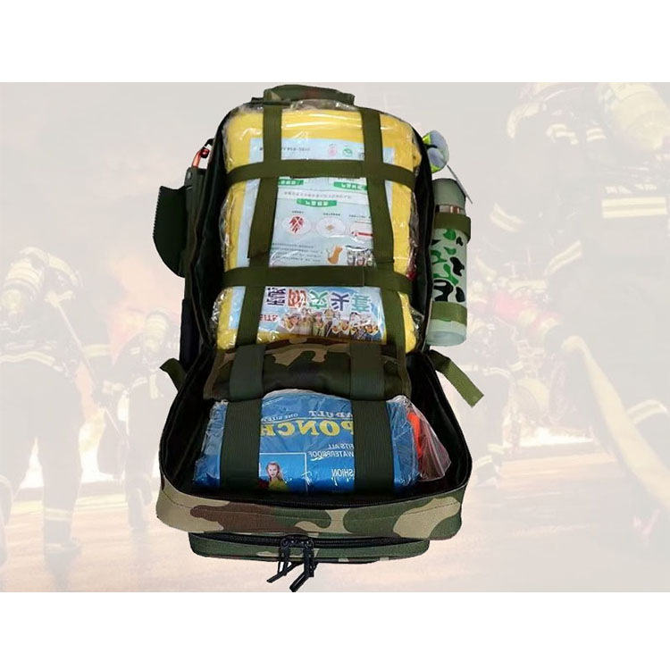 装备清单: 应急包 应急手电筒 安全救援绳 户外保温水杯 战备手斧 医护包 手板锯 分体反光雨衣 口哨 不锈钢饭盒 金银保温毯 荧光棒