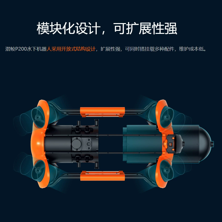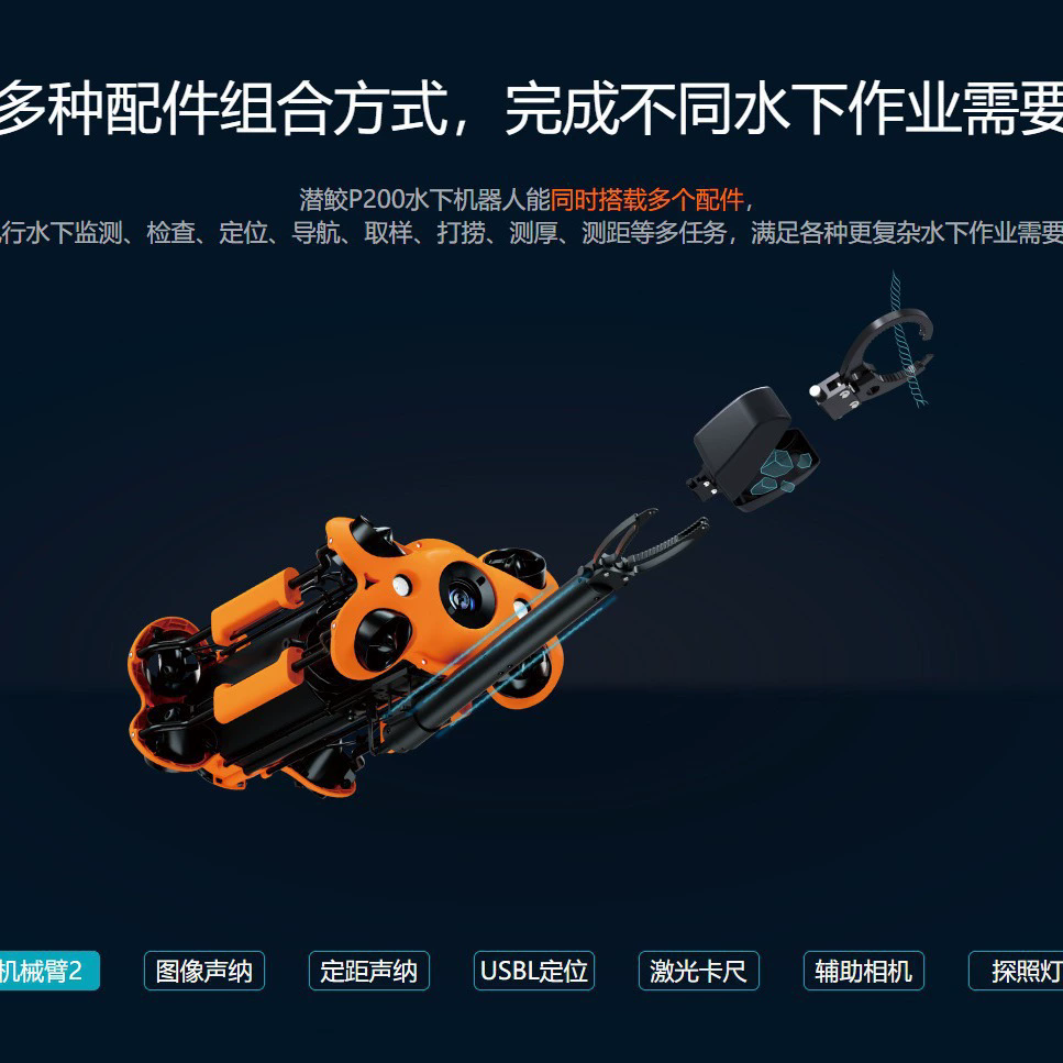 P200是一款搜救型水下机器人,采用8个大功率推进器,360度移动。