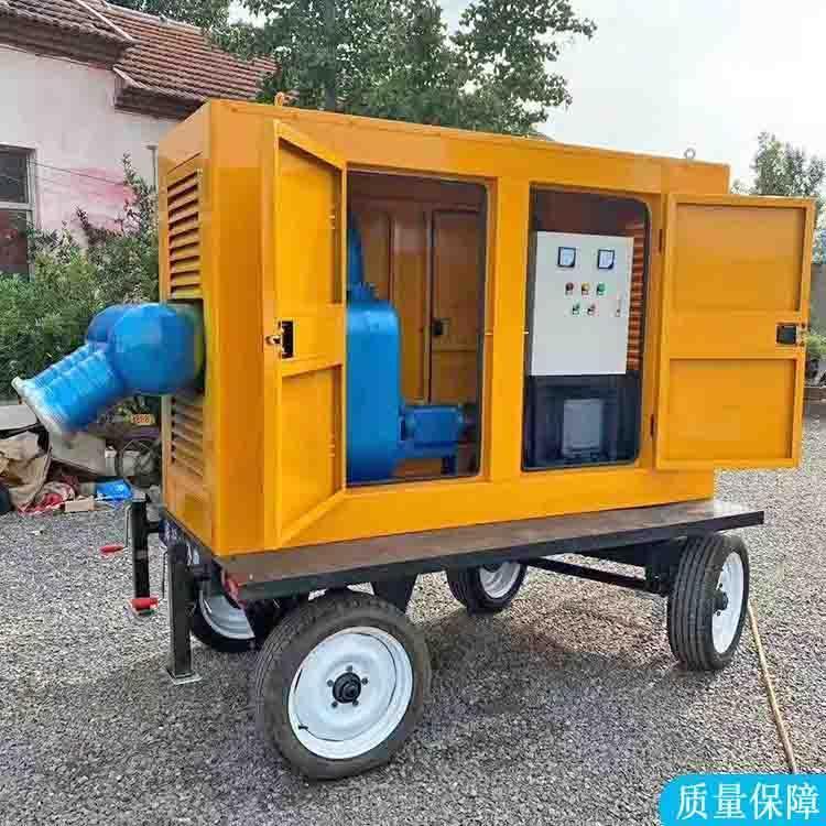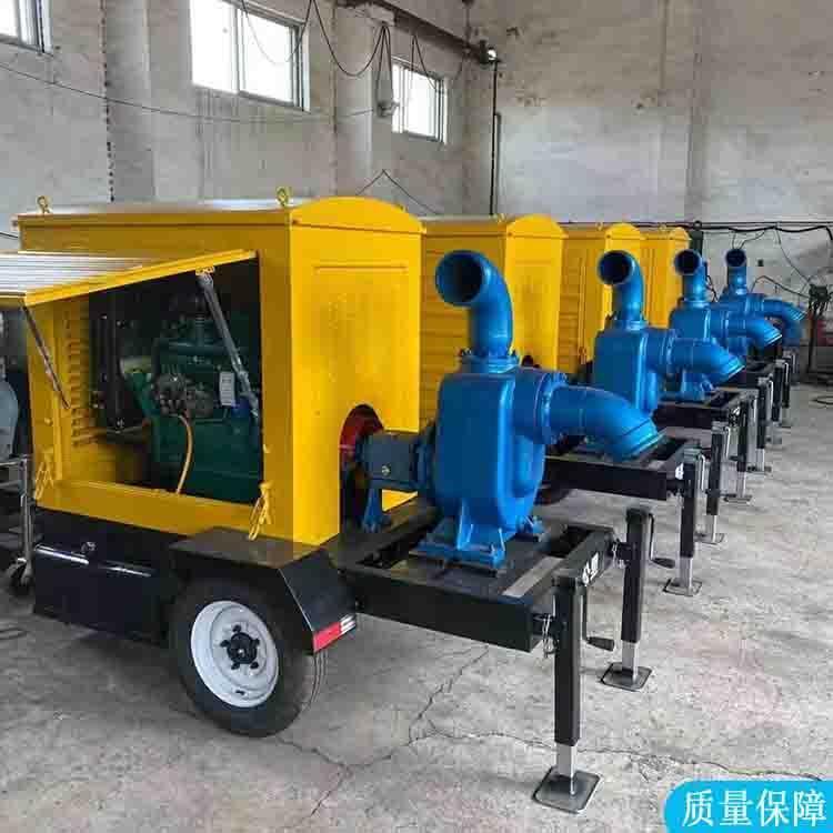 柴油机、自吸排污泵、启动仪表箱(显示:转速、水温、油压、电压等,带四保护功能)、四轮拖车(汽车轮胎,转盘转向,手刹,4个手摇机械柱脚,牵引拉杆,底座油箱6小时容积)、防护罩(罩住发动机)、蓄电池、高弹性联轴器、DN200进口接头+弯头、DN150出口接头+弯头、DN200进水管8米/1条、DN150出水管20米/5卷配水带接头4套、DN200过滤网1个
