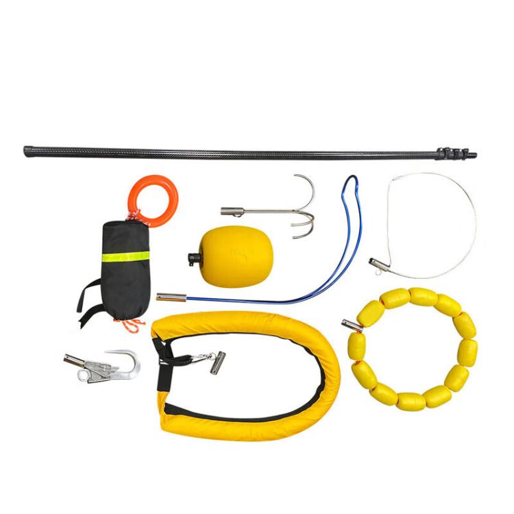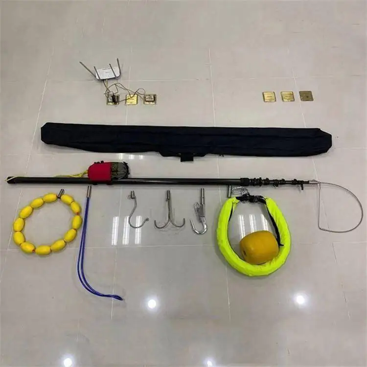 2、救生绳:从头到尾穿过救援伸缩杆,救援杆捕捉遇险人员后形成绳索保护;3.工具头便携包:可放置工具头,材料为防水尼龙网,尺寸75×50cm;4.伸缩杆便携袋:用尼龙防水材料,手提肩背可,附救生绳袋1个。5.工具头(工具头8件)
