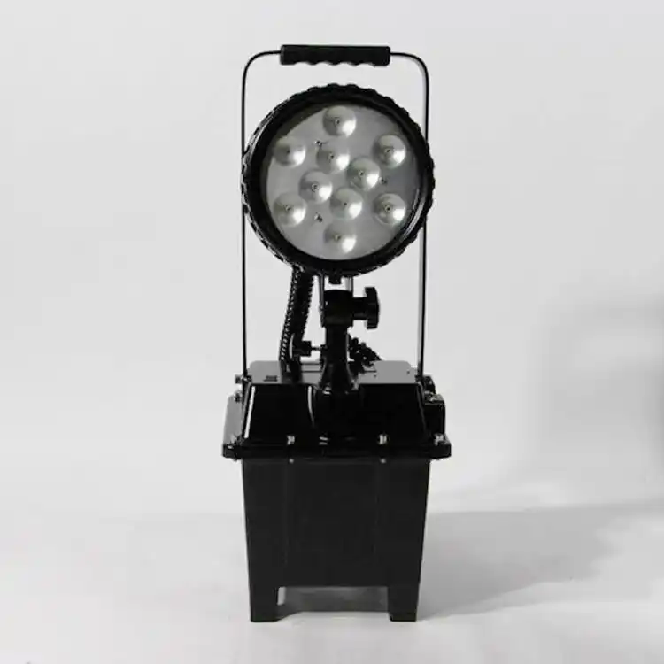 移动工作灯简介: 用气体放电光源,发光效率快,寿命长,节能环保; 电池有应急电源功能,灯具用密性工艺设计,防水防尘; 灯头可固定在灯体或其他支撑物上,用灯头时上下120度调节,也可卸下手持使用; 可选配三脚架,升降杆可升降1.2~2.8米; 合金外壳和防弹胶外壳确保灯具,可受强力碰撞和冲击; 外形美观,结构紧凑,有方便移动的滚轮和手拖带,使用方便; 无记忆电池可随时充电,一次充电后半年内储电量不低于满容量的85%,两年内储电量不<满容量的55%,有低电压放电保护,保护电池过充过放