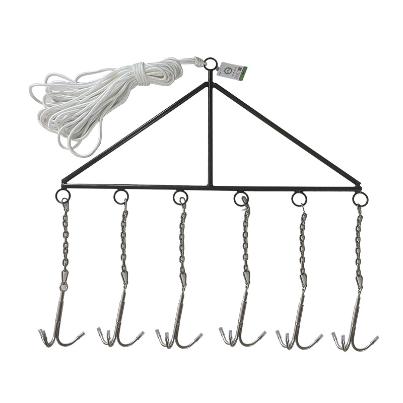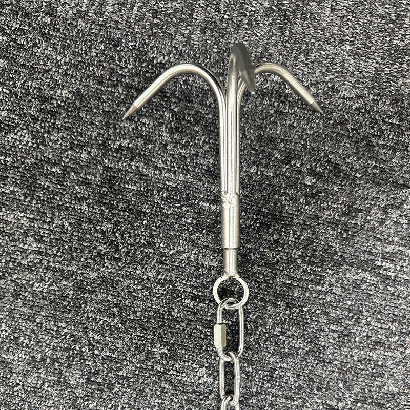 1.救生滚钩的钩体采用倒刺抓钩的原理,用于水下搜索溺水人员,由三角拉杆,不锈钢锁链,三爪锚钩,搭扣连接器,不小于10m双层尼龙编织绳组成,主体可以拆卸方便运输和保管。