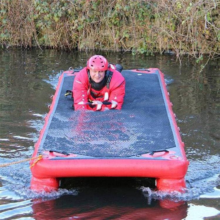 大浮力,大承载面积,适合水上、冰面和沼泽救援多个浮桥可通过绳索或者魔术贴进行串联/并联,行成救援通道;
