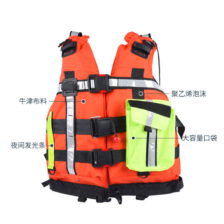 1、防滑把手:救生衣上有防滑把手,方便救援人员到岸边,加快救援;