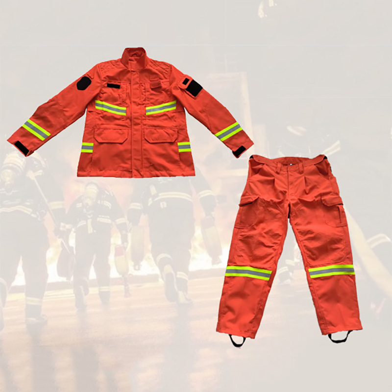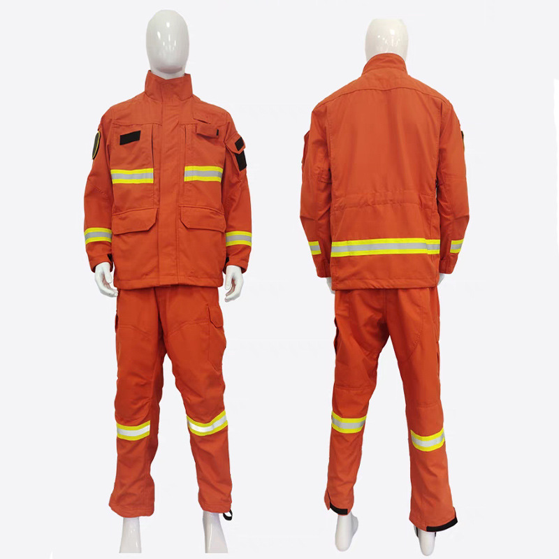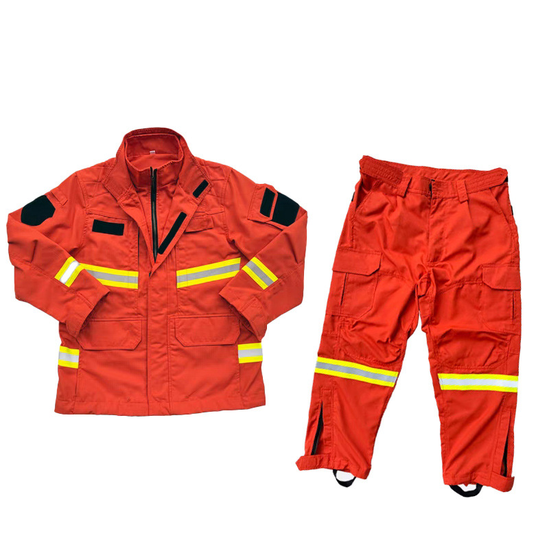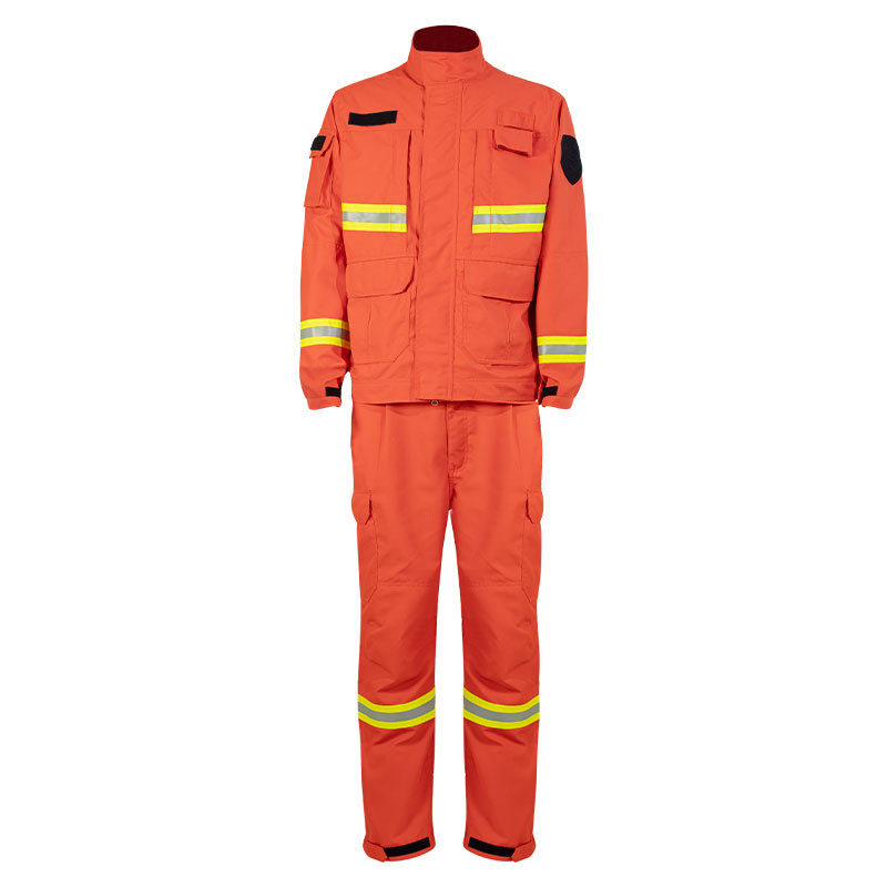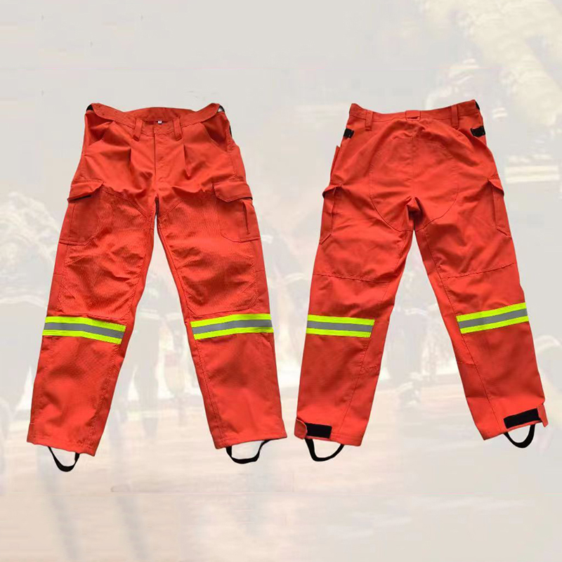 裤腰两侧魔术贴收紧设计,方便救援人员穿脱。衣侧工具袋增加织带挂样,可悬挂小型工具,方便实用。膝盖部位用芳纶橙色面料补强,裤角两侧拉链能调节,两侧裤腿处360°阻燃反光条设计。