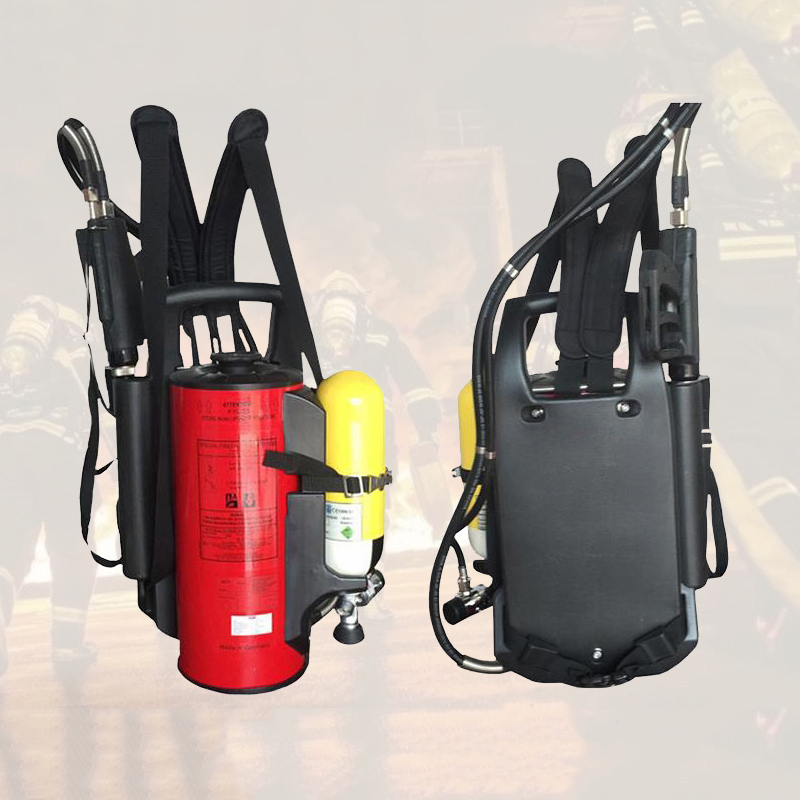 连接好的水箱和气瓶背到肩上,调节好舒适度。