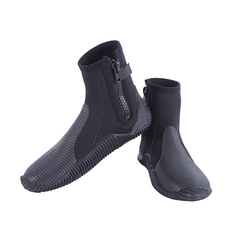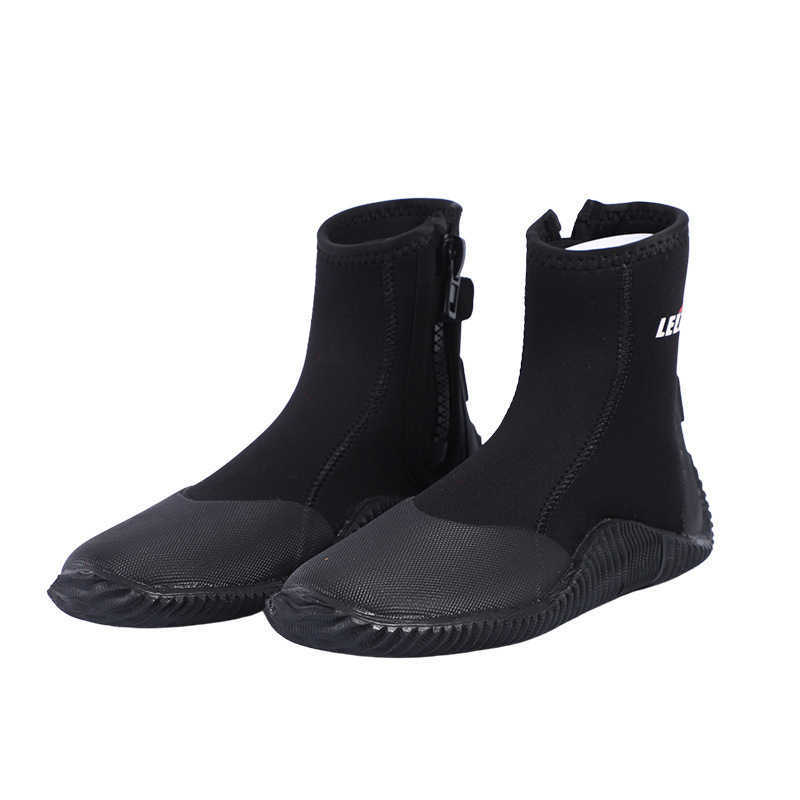 塑料底部成型强,止滑能力稳定,耐磨性能好。鞋面和鞋跟部分增强了保护层,提高了靴子的强度,缓解了碰撞的冲击,增加了脚的安全性;鞋跟部分有止滑凸块,容易与蛙鞋稳定结合。适用于亲水运动,如潜水、划艇、冲浪、漂流等。