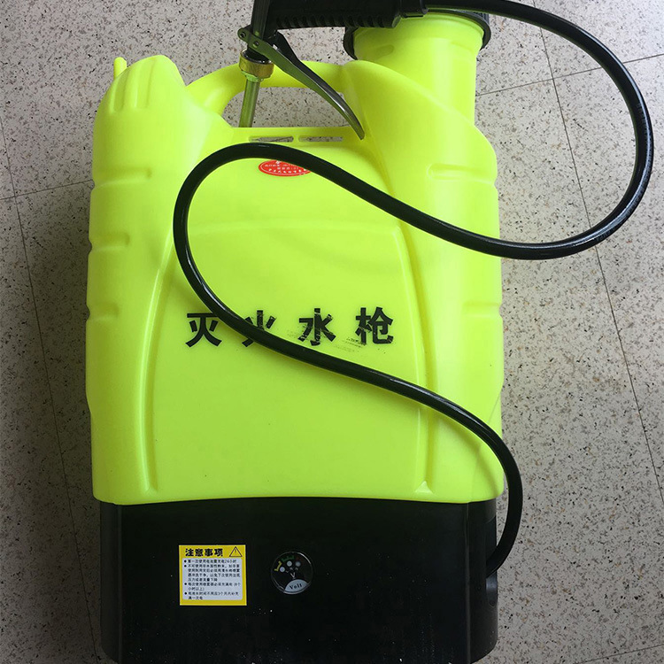 水灭火设备 参数: 1、电动作业和手动作业两种方式 2、桶装背负式 3、电池与电动水泵匀在水桶下面,安装有过滤网,背带有调节功能 4、净重量(含电池,不含水)≤8KG 5、容积:≥18L 6、噪音:≤55DB(A)