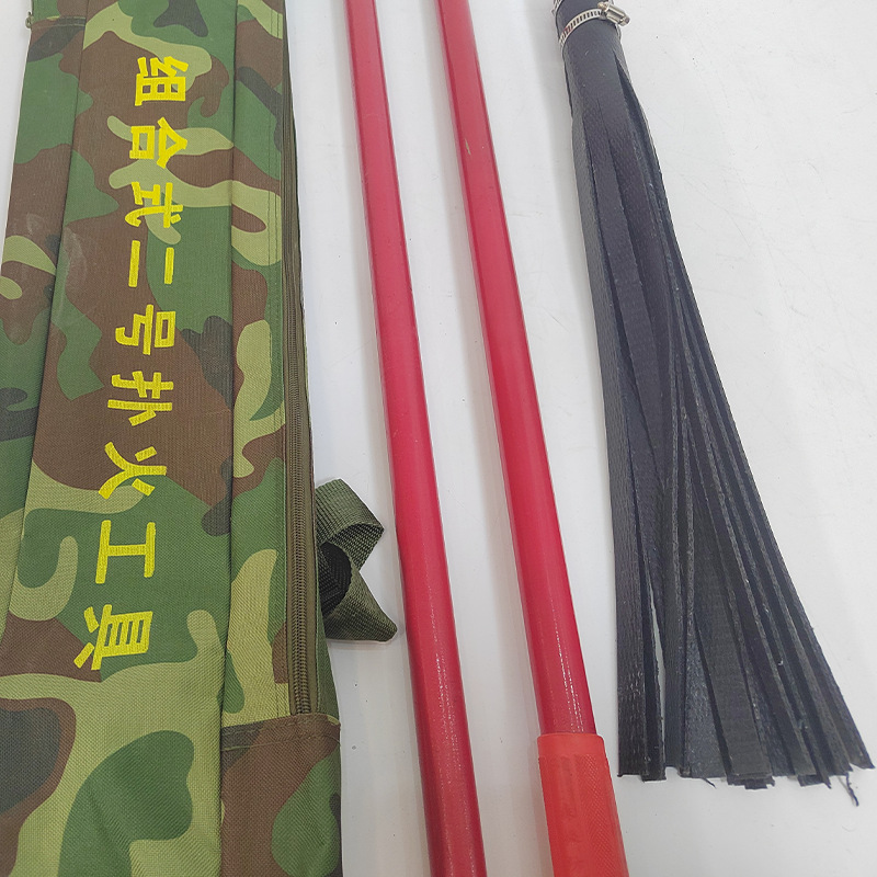 2号灭火工具又叫森林灭火拖把,消防打火把等,这种“拖把”,由棍和15条上胶皮带成,棍长约1.2米,胶皮带的长度不足半米
