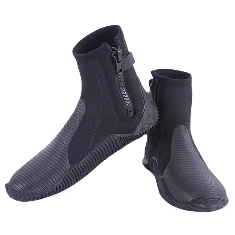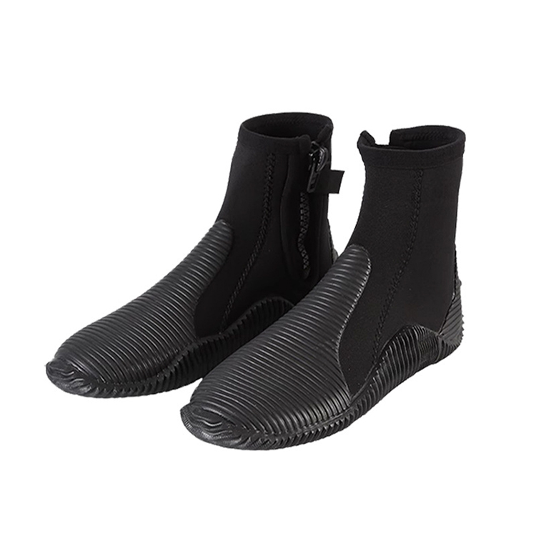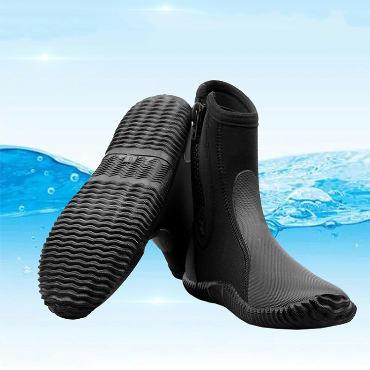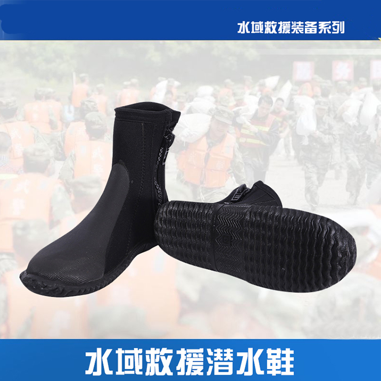 塑料底部成型强,止滑能力稳定,耐磨性能好。鞋面和鞋跟部分增强了保护层,提高了靴子的强度,缓解了碰撞的冲击,增加了脚的安全性;鞋跟部分有止滑凸块,容易与蛙鞋稳定结合。适用于亲水运动,如潜水、划艇、冲浪、漂流等。