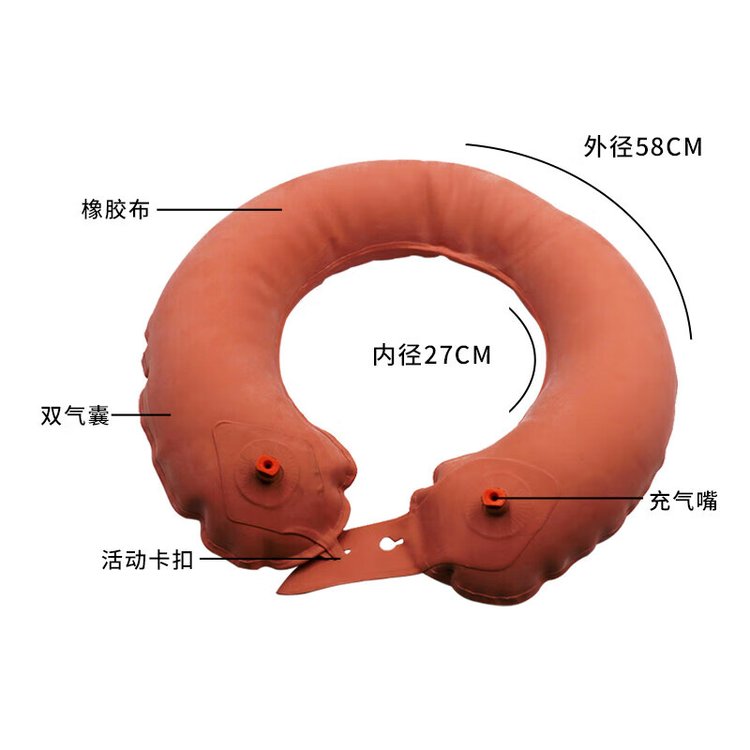 尺寸:不充气平放时尺寸:内圆直径:278mm±10mm平叠宽度:160mm±净重0.725mm±0.05(kg),浮力≥15kg。
