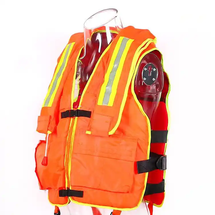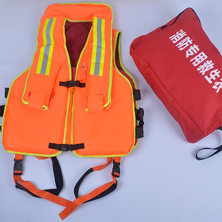 名称: 消防救生衣漂浮时间:≥24小时面料: 防水牛津布充气时间:5秒快充浮力: >200N产品颜色: 橙色产品特点:浮力大、重量轻、材质好、便于携带适用场景:水上救援、水上运动、漂流等。