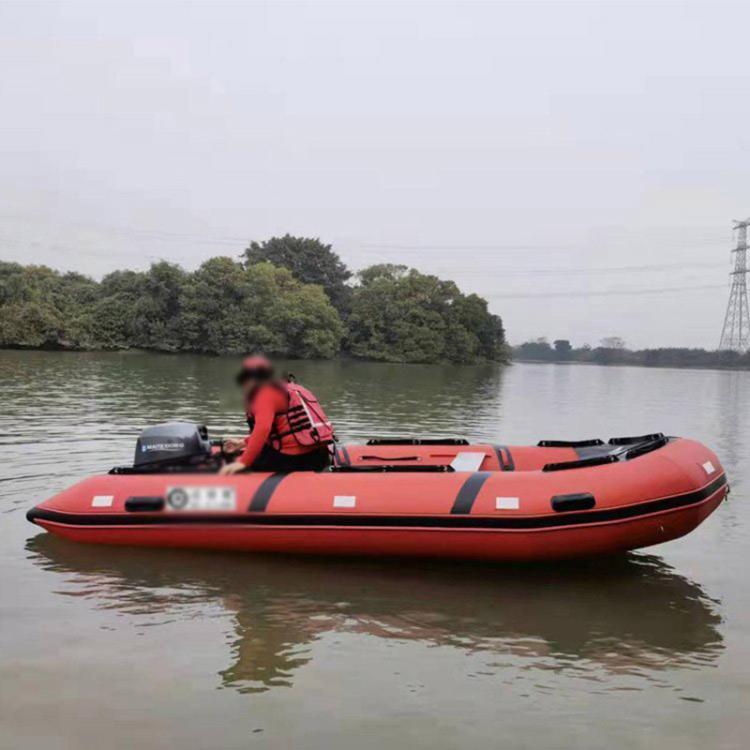 充气式橡皮艇材料厚度≥1mm;多气囊充气式,满载10人;防滑铝合金底板(可拆装);带电动充气泵;