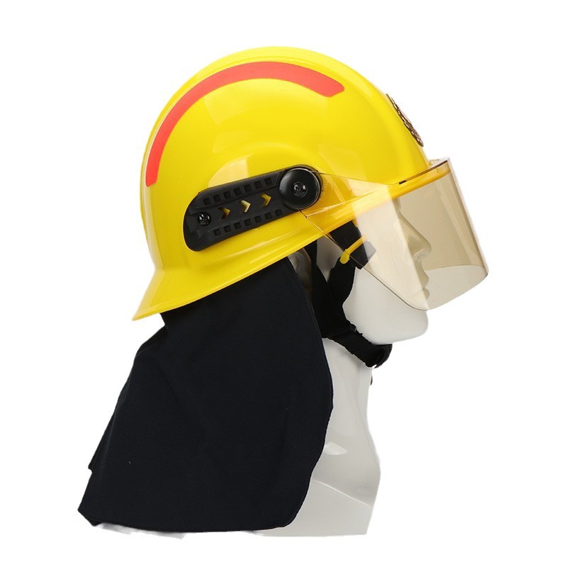 17式消防头盔 17式消防头盔是消防员在灭火救援时佩戴,用于保护头部、颈部免受伤害的防护装置。它有好的强度和冲击吸收性能,可缓冲、吸收冲击作用所引起的能量,消防头盔耐穿透、耐热、电绝缘性能好。 产品结构介绍 1、头盔由帽箍、帽托、缓冲层、下颏带、面罩、披肩组成; 2、帽箍大小可调节,接触头前额的部份具有透气、吸汗功能; 3、下颏带长度可调,脱穿方便。