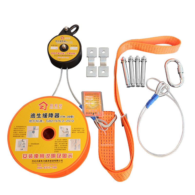 产品名称∶往复式逃生缓降器 使用高度上限∶ 6~100米 缓降速度∶0.6-1.4m/s