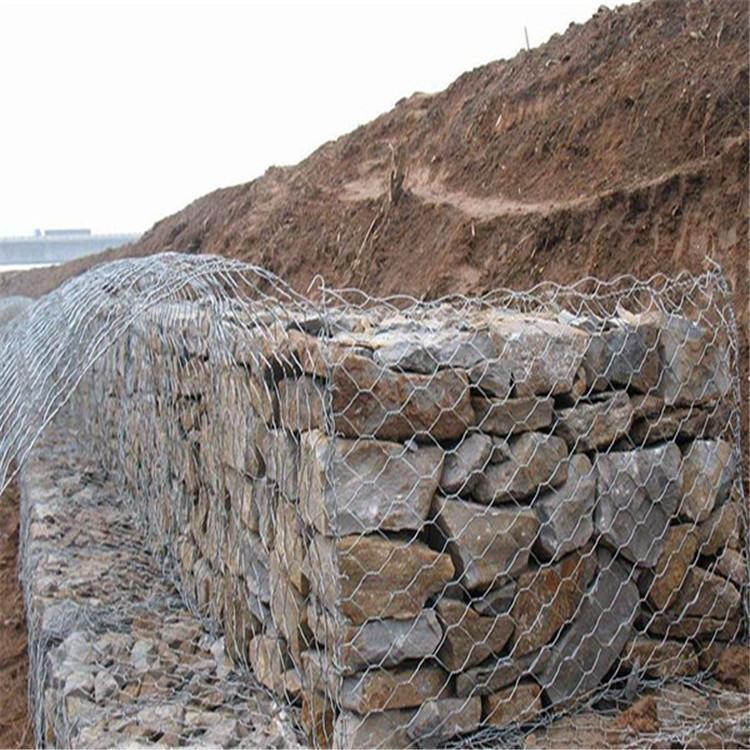 石笼网是使填石固定就位的铁丝或聚合物丝网格式制作物。铁丝笼是由铁丝编织的网格或焊接而成的结构物。这两种结构可以是电镀的,编织的铁丝箱可另外涂上PVC。可用于边坡支护、基坑支护、山体岩面挂网喷浆、边坡植生(绿化)、铁路高速公路隔离护拦网,它还能制成箱笼、网垫,用于江河、堤坝及海塘的防冲刷保护,水库、河流截流用网箱。