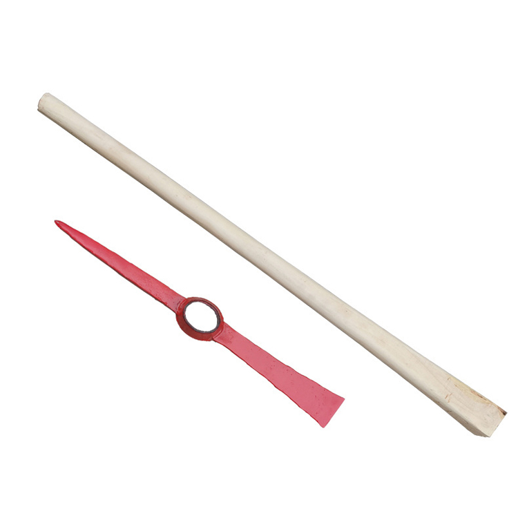 特点:手柄采用优质木柄材质,无毛刺;镐头采用碳钢材质,经过高频猝火工艺处理,硬度高,耐冲击;接头处用螺丝固定,结实耐用。