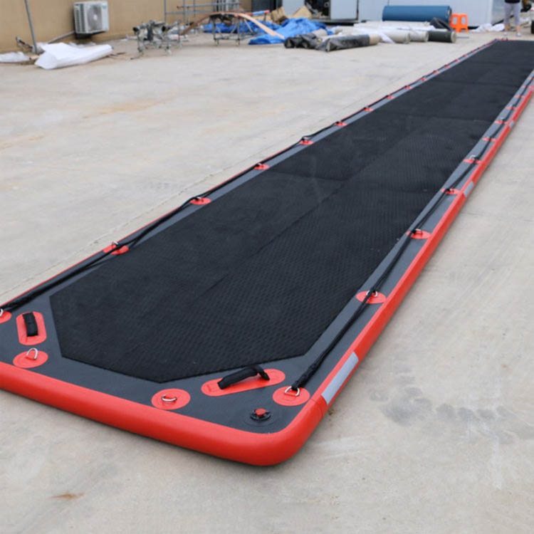 1、可以移动的气动救援浮桥,它能使救援人员在冰面、水面、沼泽地面或其它不稳定的地面上快速地进行搜索、救援等工作。通过与压缩空气瓶直接连接的充气软管对救援浮桥进行充气。救援操作完成后,浮桥的放气操作可通过排气装置来完成。低压操作,操作快捷,阀门可避免充气过量,采用材料制成,四周有发光带方便夜间操作,边缘设计,可轻松拖拉通道上的人员。