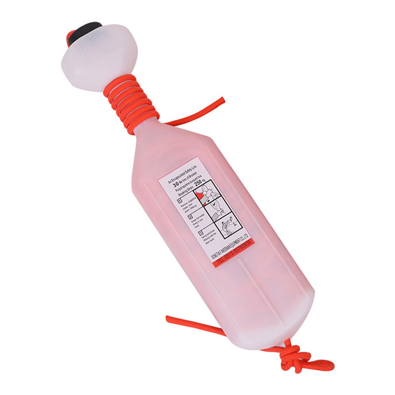 此产品是救生圈和救生用的绳索,可配在小船上、救生浮上、救生筏等。通过绳索将救生设备或救生圈连接,在遇到危险时,抛出救生设备或救生圈,拖拽落水人员到AN全区域的救生产品
