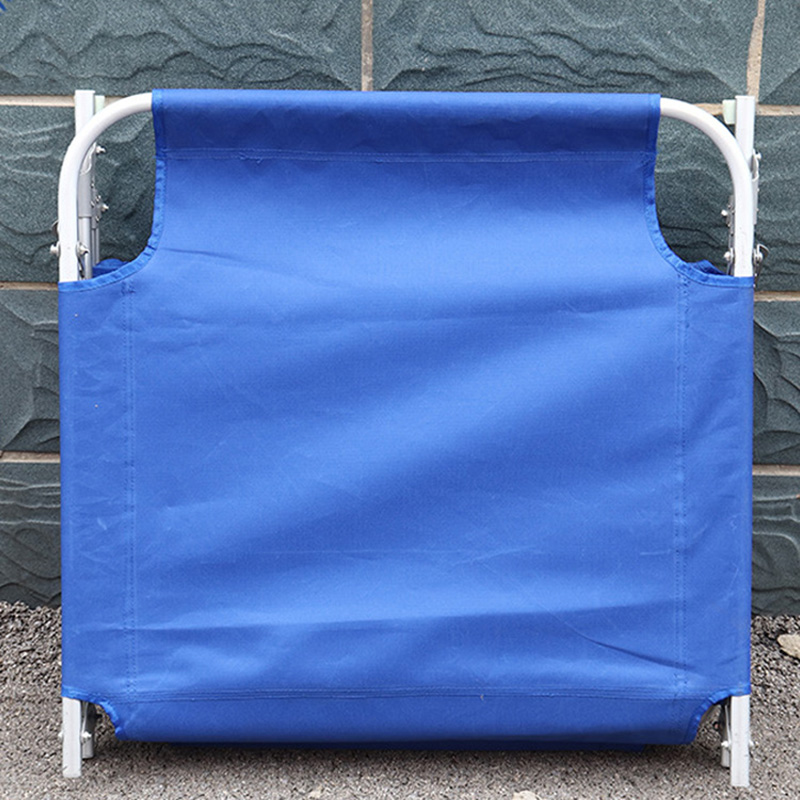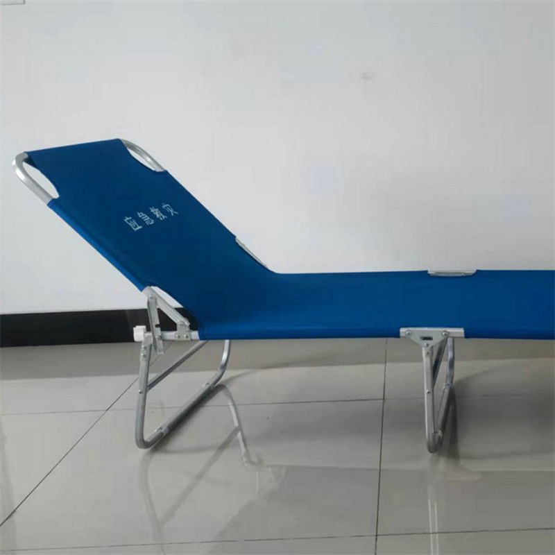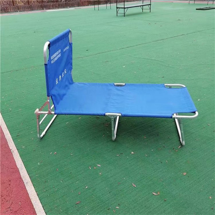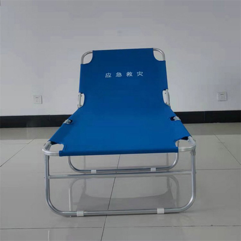 应急救灾折叠床未钢管床架折叠式,有床面和床架两部丰组成,床头附带一个可搭扣的枕头,床面的上板部位加垫塑料板一块,塑料板在使用的时候向床尾方向推,折叠时向床头方向推,床背面配置可调节束紧带两条,主材料为pvc涂层布,用于床布,焊接钢管,用于床架,床腿。白色印字端正,清晰,色度饱满,牢固,不漏低色。其特点为方便携带,可折叠,强度高,适应应急救灾使用。