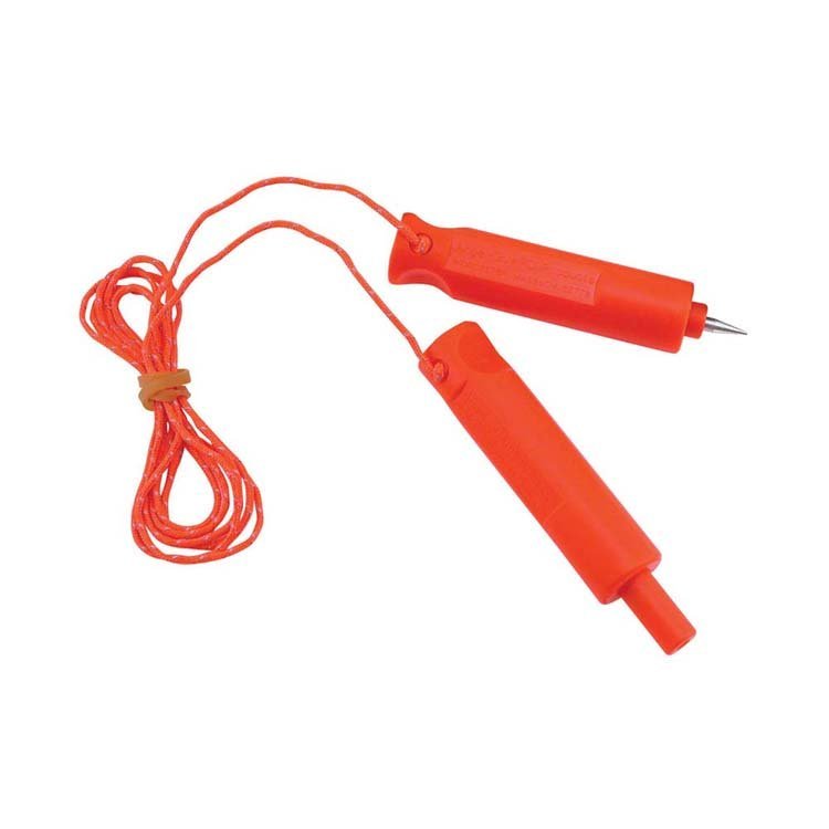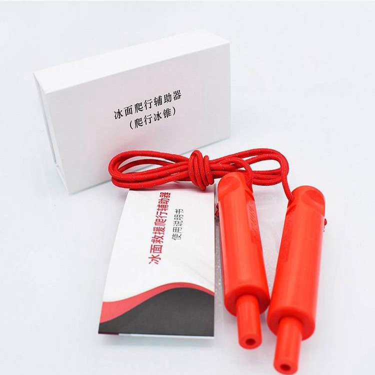 结构冰面爬行辅助器由两个可压弹出金属冰锥头的把手和反光连接线组成 产品特点这款小巧的爬行辅助器可以帮助您在冰面上寻找固定点
