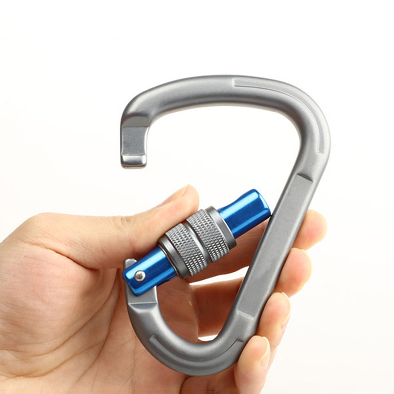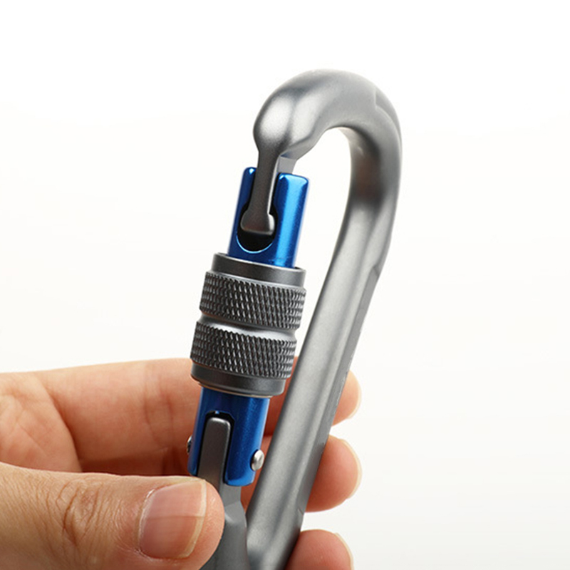 特点:丝扣螺母设计,使用顺畅 铝合金材质 大开口保险锁扣 自动回弹 轻巧便携