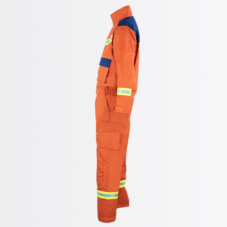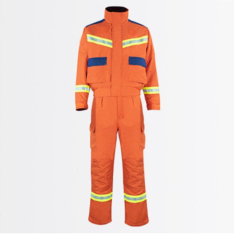 立领设计更好保护颈部,上贴及上衣立体口袋均有袋盖。灵活魔术贴设计,衣服多处反光条设计.先进的剪裁设备、精工缝纫技术 结合多种不同的缝纫线,快速响应客户要求。舒适层内里,芳纶永久性阻燃。