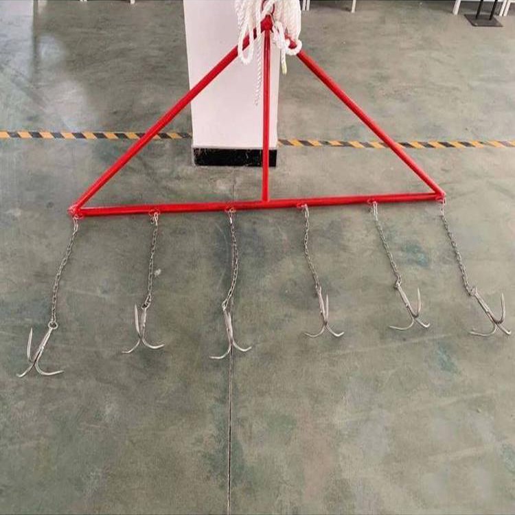 产品特点: 1.用于搜寻打捞落水失踪者, 在一些透明度不十分好的水域,原来只能依赖潜水员下潜搜寻落水失踪者。 2.该救生滚钩由三角拉杆,不锈钢锁链,三爪锚钩,搭扣连接器,不小于10m双层尼龙编织绳组成。