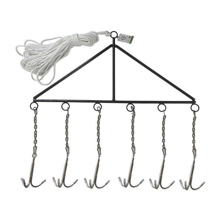2.该救生滚钩由三角拉杆,不锈钢锁链,三爪锚钩,搭扣连接器,不小于10m双层尼龙编织绳组成。