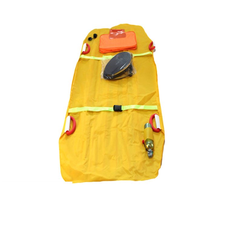 用途:用于人员、物资的转运。功能需求:担架两侧配有两根漂浮棒,漂浮棒通过快速粘帖扣环与担架连接,可连接各种形状的担架
