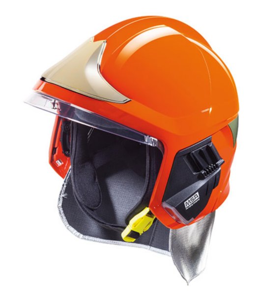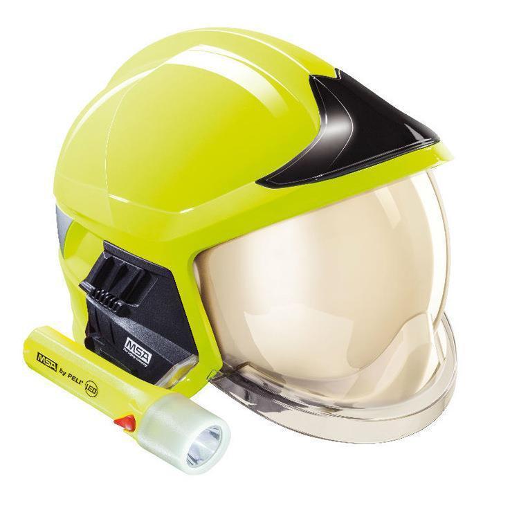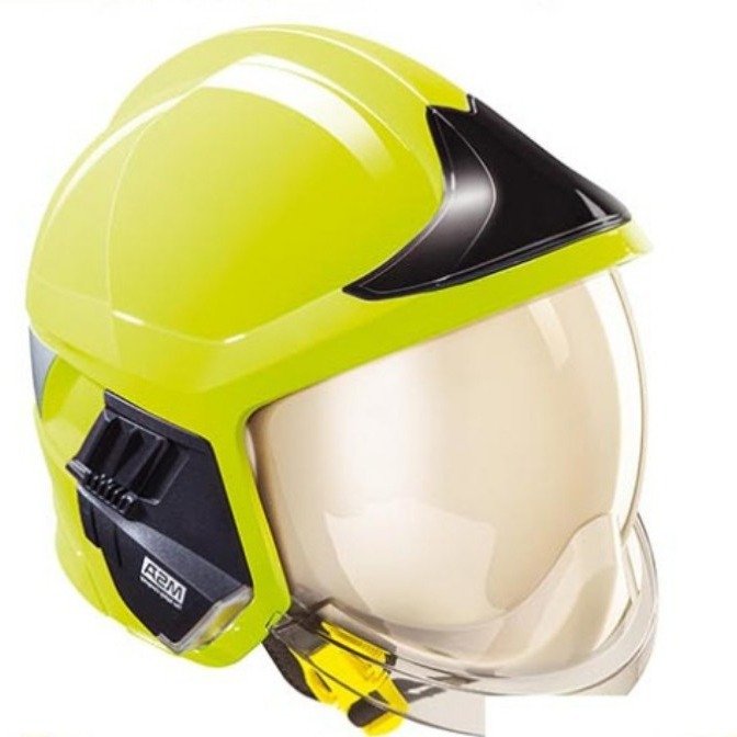 具备防尖锐物品冲击、反光、绝缘、轻便等性能,头盔内可佩戴空气呼吸器和无线通讯系统,有明显的反光标志。