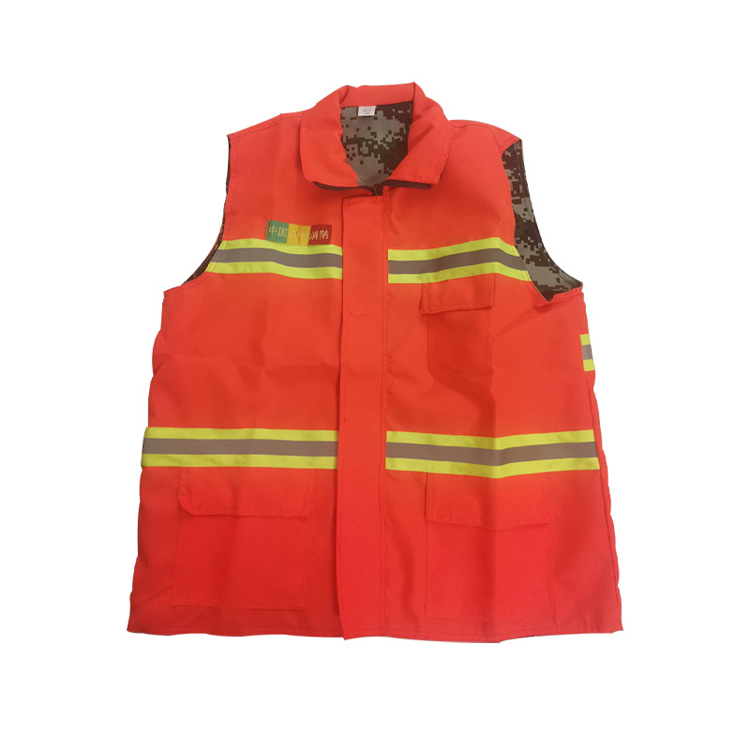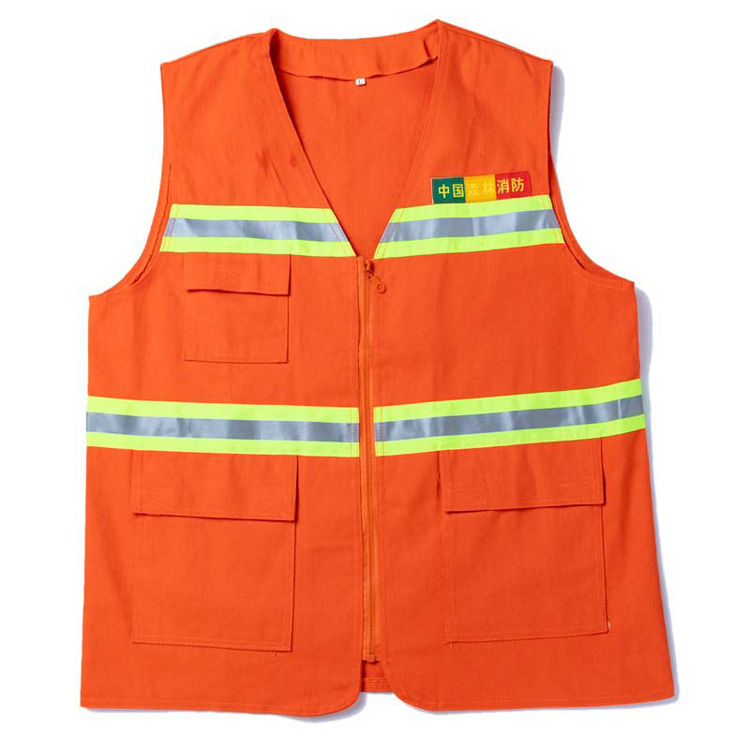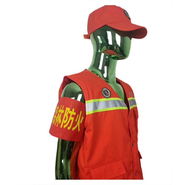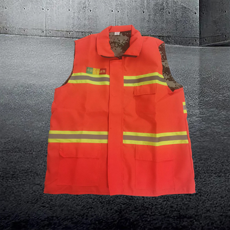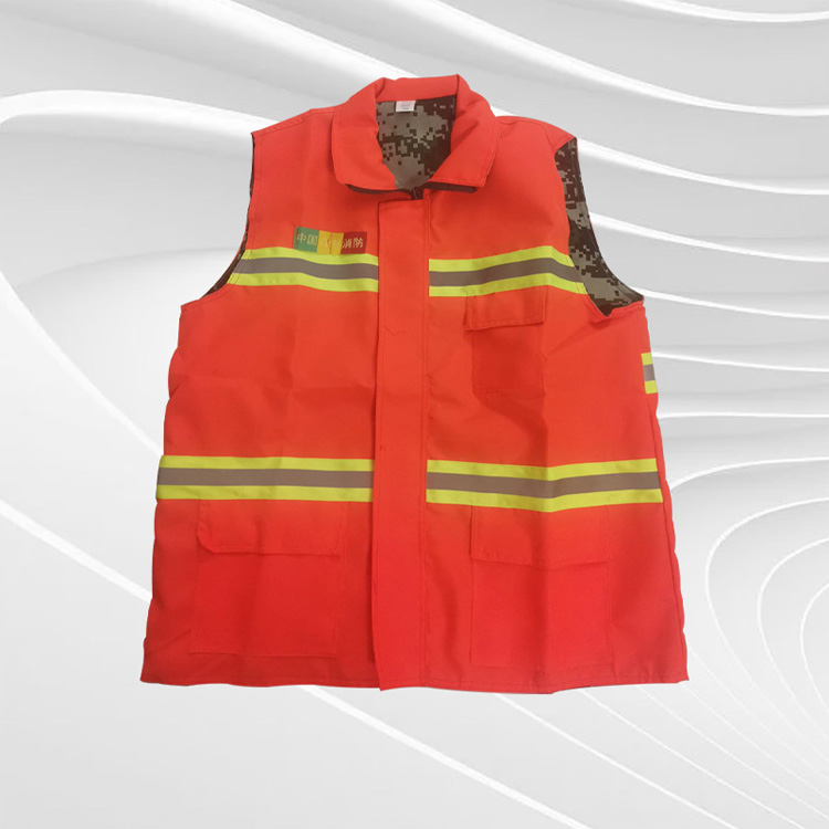 前后带有醒目反光条,后背印有“深林消防”字样,后背字样可定制。正面三个口袋,魔术贴粘扣。