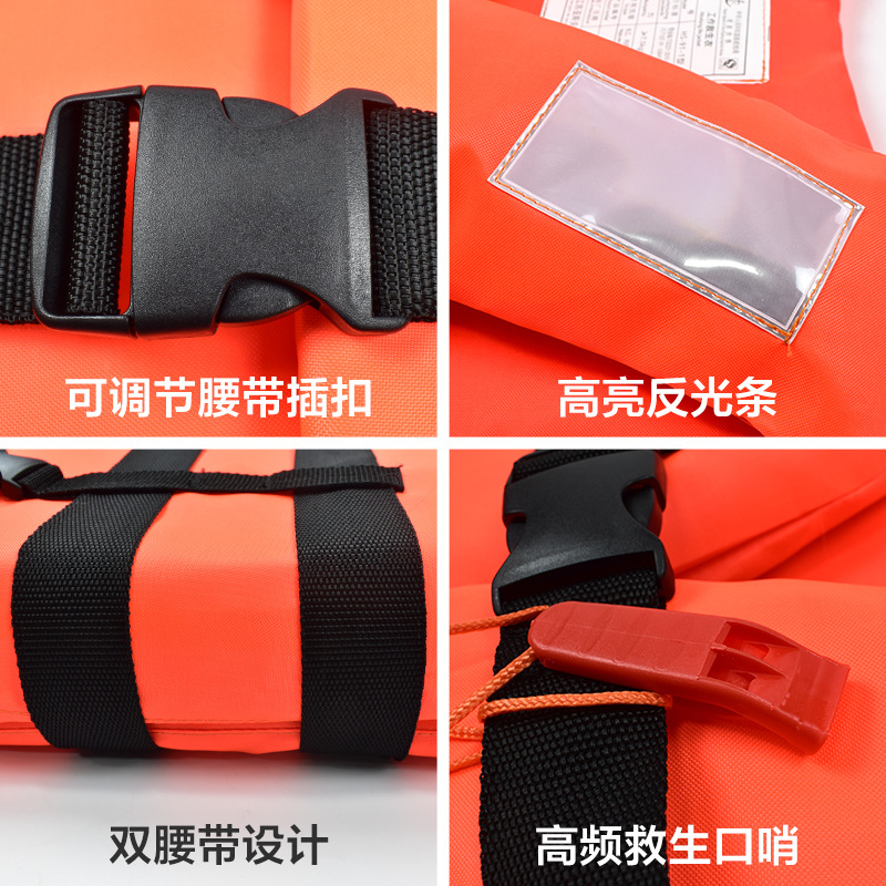 特点:EPE泡沫填充、反光片、双腰带设计 加厚牛津面料 适用范围:长江、内河、旅游及防汛等