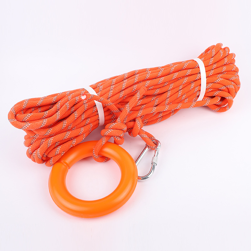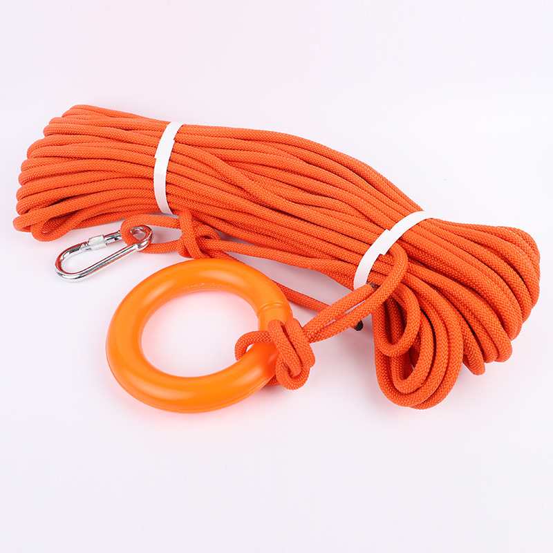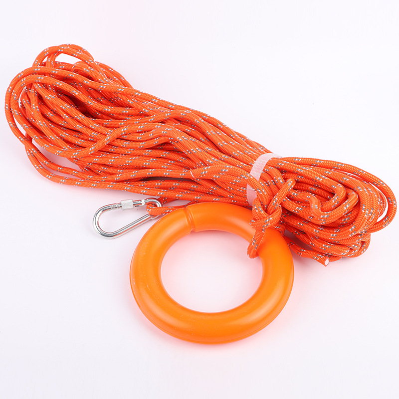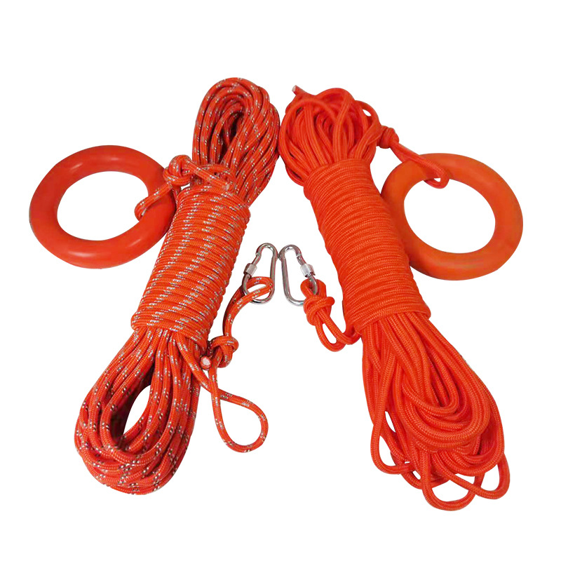 本产品可以浮在水面,是水上用的绳索,可配在救生圈、救生衣小船上、救生浮上、救生筏上,将浮环丢向落水者,落水者将浮环套在手臂上,然后弯曲手臂。等落水者套好浮环,拖动浮索,救起落水者。