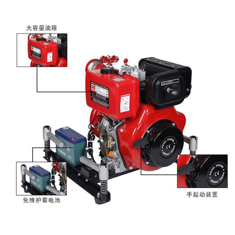 整体结构紧凑、体积小、重量轻、压力大、运行可靠。具有长时间连续运行、冷启动迅速等特点;主要用于城镇、森林、工矿企业灭火,也可用于给消防车供水、城市排涝等,是消防队、森林灭火的装备。