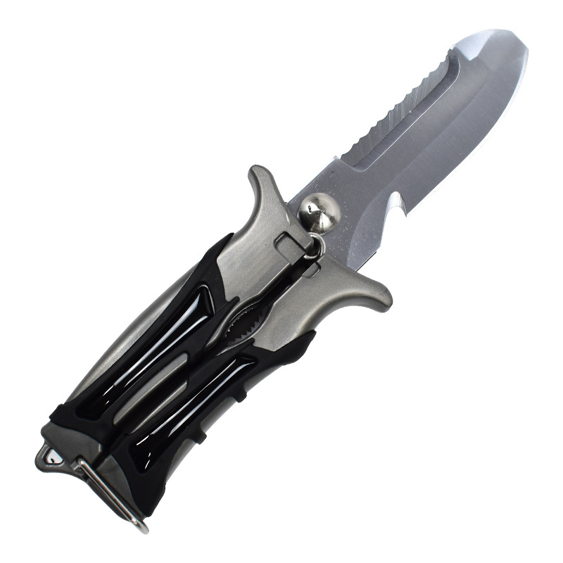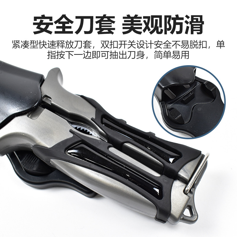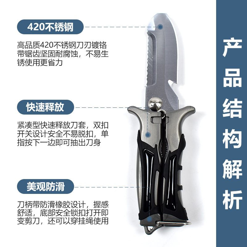 ①关闭时是潜水刀,打开是一把潜水剪刀,2合1水域救援工具
