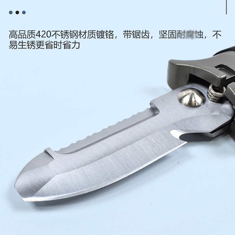 ②高品质420不锈钢刀刃镀铬锯齿,不易生锈