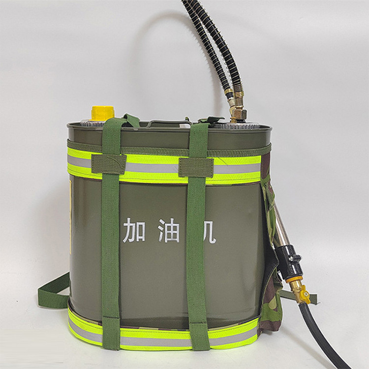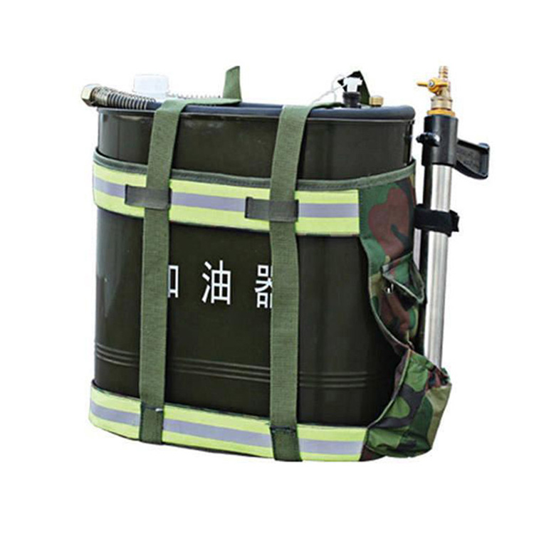 油桶采用you质铁制作,配有高强度橡胶软管,连接加油qiang,使用方便、an全快捷、简单。油桶容量20L,密封性能好,具有an全、防泄漏、防腐、防酸碱等特点。双肩背带,背负舒适且tou气, 轻松省力,方便上山行军。很好地解决了消防车辆、扑火机具及人员生活的用油问题。