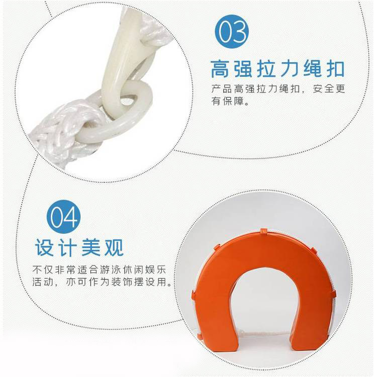救生圈配有尼龙绳设计,可以方便救生圈悬挂,增加浮力