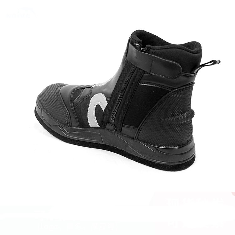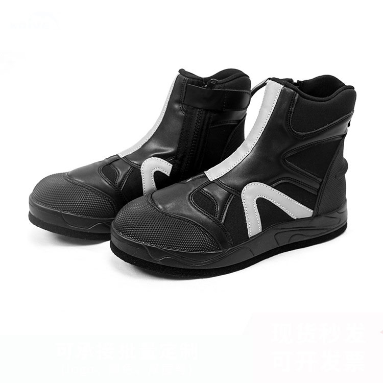 ■双层结构, 内部5mm氯丁橡胶与外部皮革- -体合成, 提供良好的防护和保暖性。 7mm的氣丁橡胶内垫可以提供良好的减震性。 ■ 凹凸纹的加强型大底,防滑且防止刚性损害,可以适应水面和陆地的各种地形。