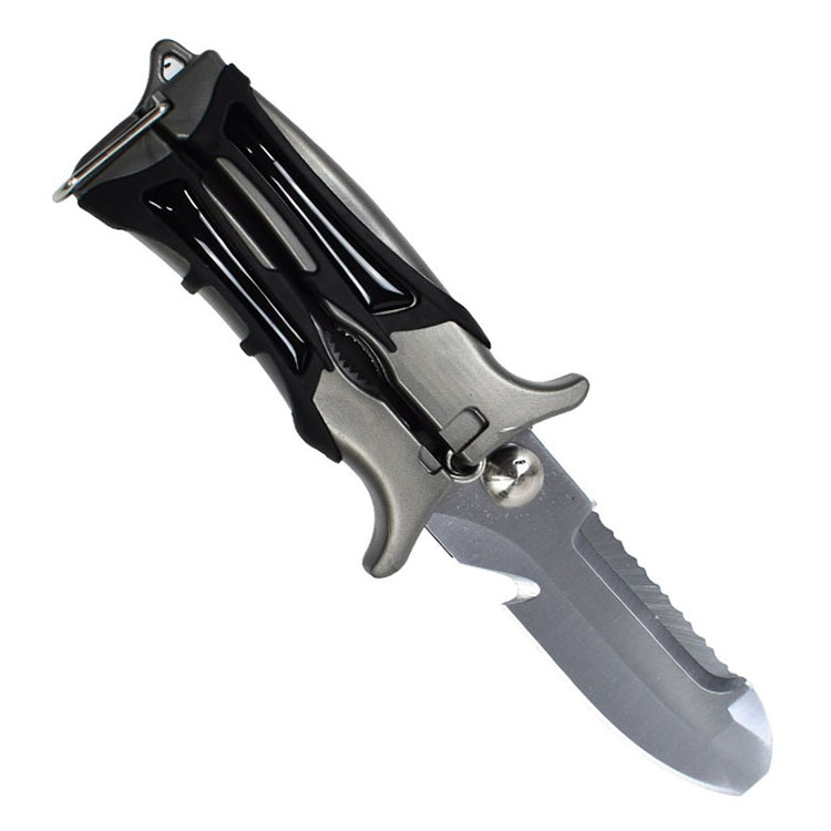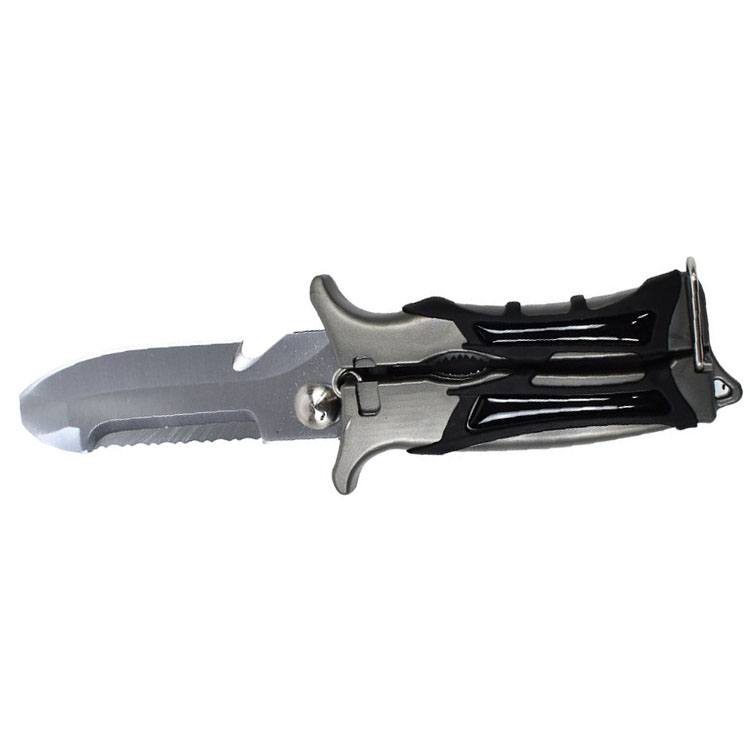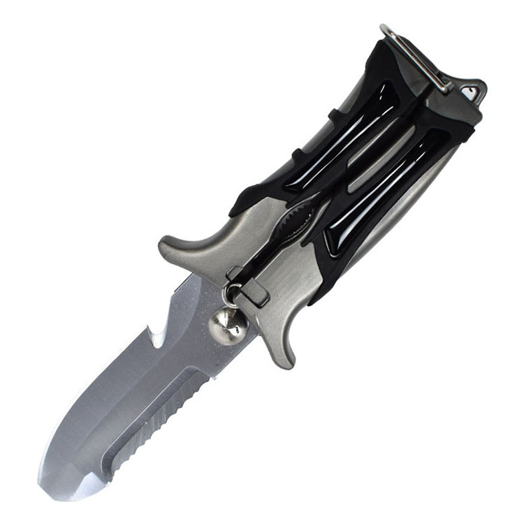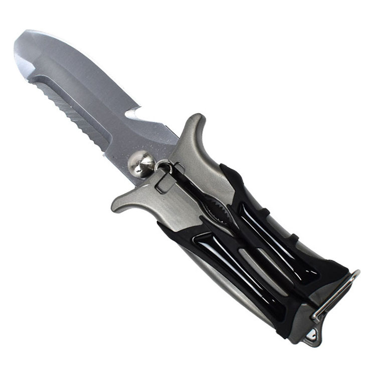 ①关闭时是潜水刀,打开是一把潜水剪刀,2合1多功能水域救援工具
