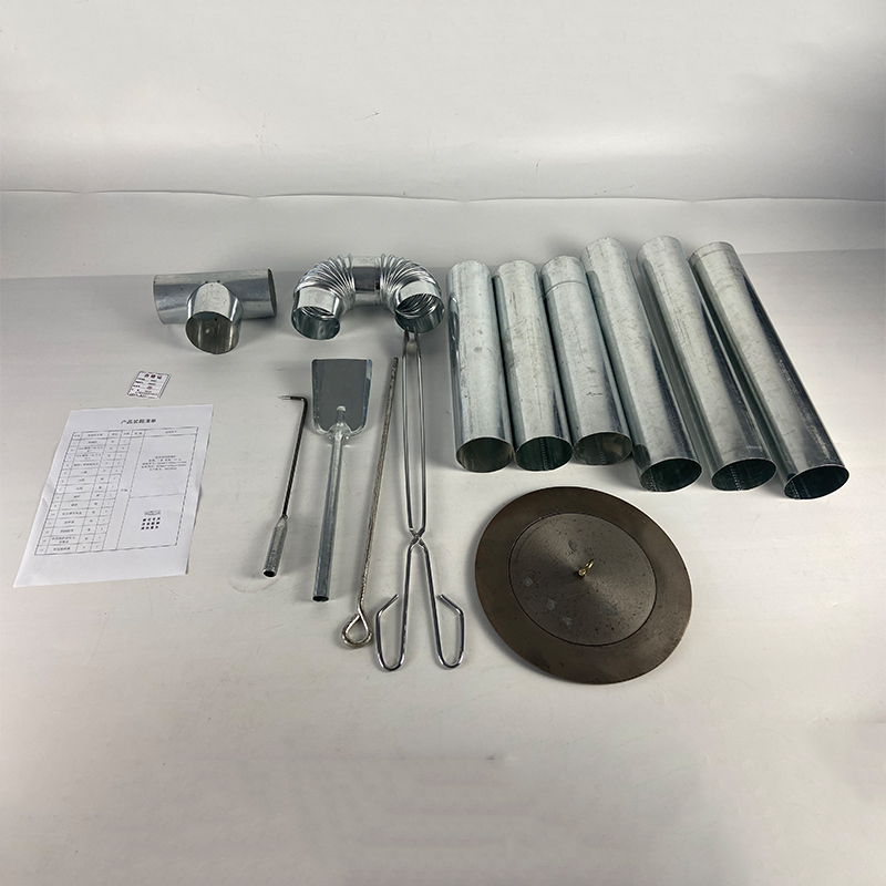 整套取暖炉由取暖炉和烟筒组成,配备火钩、火钳、火铲和捅条等四件操作工具。燃烧炉膛采用高温烟气和炉衬两层保温、二次进风燃烧,使其燃烧,效率高,可燃烧原煤,型煤、木柴等固体燃料。炉体是取暖炉的主体,既保证燃料充分燃烧,又担负向室内散热的作用,由炉套(外壳)、炉膛底座、灰斗(炉门)、炉膛体、二次进风圈、炉篱、炉衬、炉盖和散热箱等构建组成。