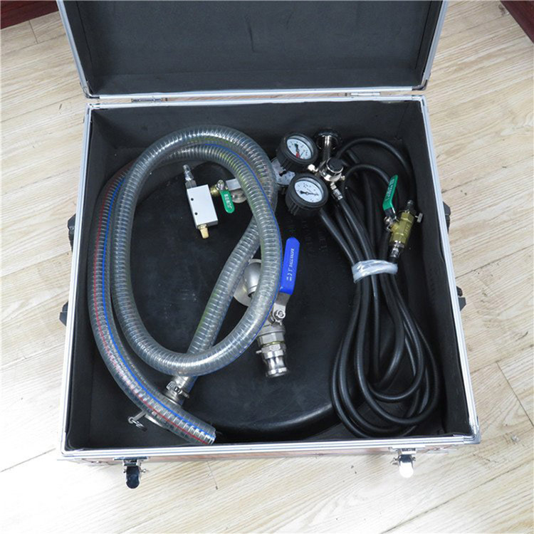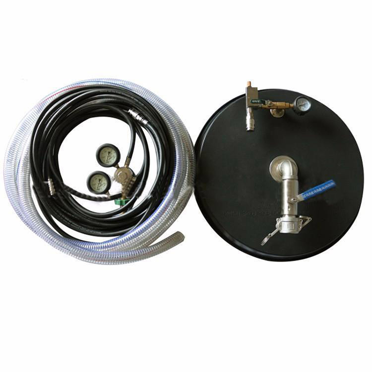 3.连接管的另一端连接到真空喷嘴进气口上,然后把吸盘放置到所需堵漏的地方接上排流管,打开空呼气瓶瓶阀,将减压器低压表调整好.