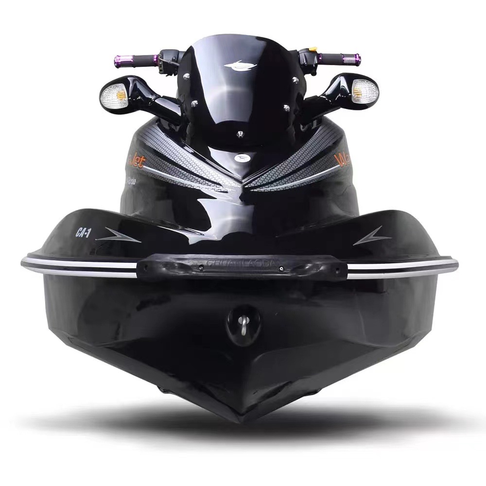 特点: 1.流线型平衡翼 增加滑行面,减低艇身侧倾,拐弯 和控制更精确,加强在恶劣环境 航行时的安全性和稳定性 2.宽大游泳平台 方便随时随地下水游泳 随时随地登船 3.大流量喷泵推进系统 配备内嵌式直径15.5CM的不锈钢 叶轮,为摩托艇提供强劲的水面 吸附力和出色的加速性能