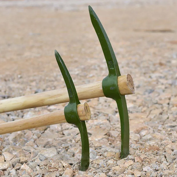 品名 大镐 镐头材质 轨道钢 镐头颜色 绿色 镐头硬度 HRC45-52 木柄材质 硬杂木 整体重量 2.7K