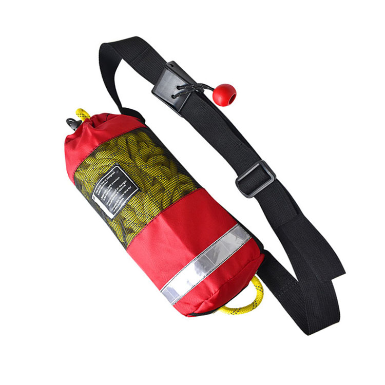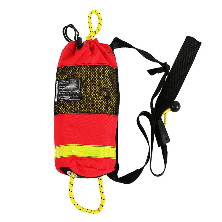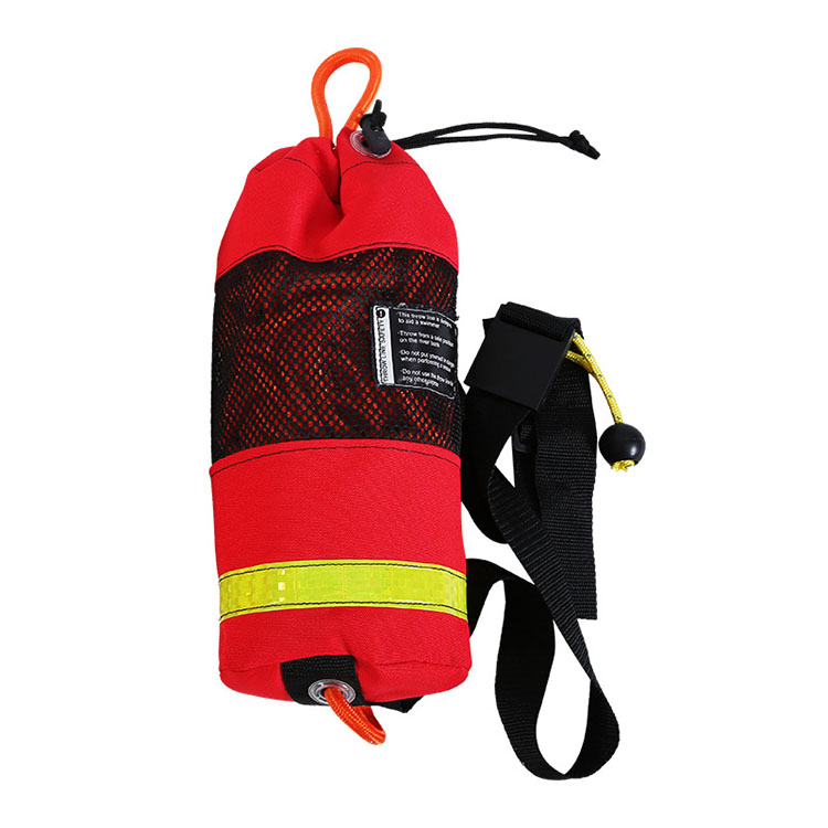 束口神设有筒型卡锁,绳包顶部设有尼龙面料束缚,有助于绳索抽出。固定插扣设计,方便系于操作员腰部、浮力马甲两侧释放带上操作。