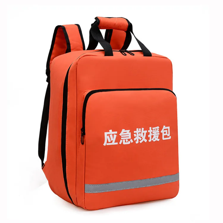 品名:应急救援包 材质:防水材质+反光条 规格:高38cm*宽15cm*长28cm 包装:常规包装 使用范围:户外、家居、车载、灾难应急等